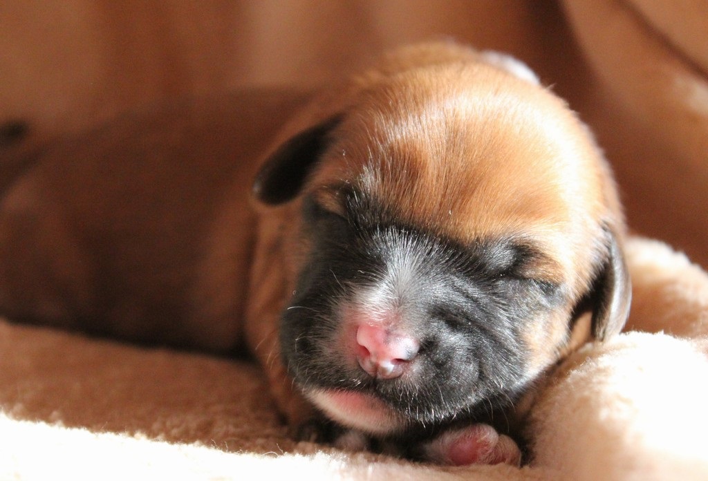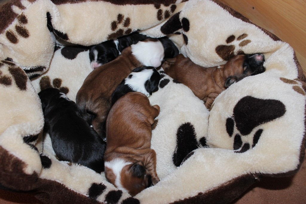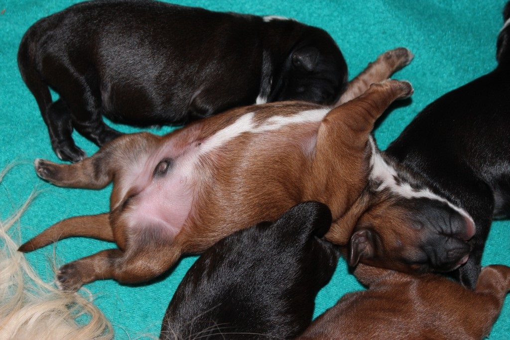 Die erste Woche verbringen unsere Welpen mit Essen, Schlafen und fleißig zunehmen.