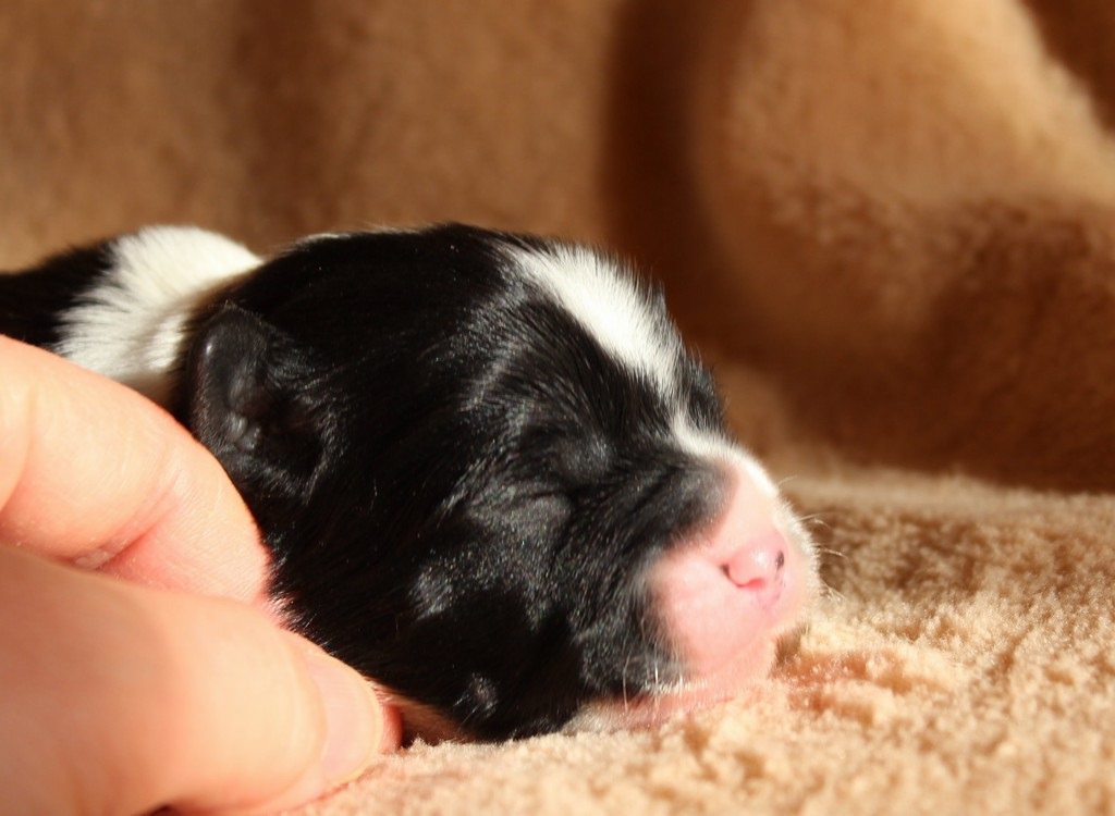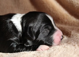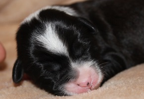 Hündin 2 Dunkelzobel mit weißen Abzeichen